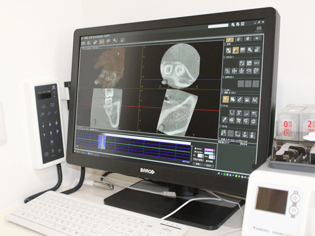 インプラント、親知らず抜歯など3Dで正確な骨の形態を把握し、安全性・確実性において患者様にとって非常にメリットのある装置です。また、1回の撮影で広範囲の診断が可能です。